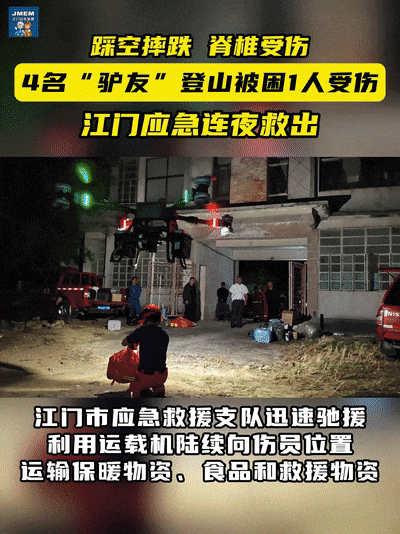 11月5日上午,4名来自珠海的“驴友”从台山市都斛镇金星村附近上山,登山途中,一名37岁女子不慎踩空摔倒,导致肋骨和脊椎受伤,伤势严重,不可二次移动。 接报后,市应急管理局派出市应急救援支队6名队员携带装备前往救援,第一时间到指挥部收集救援信息。据悉,受伤女子因摔断肋骨和脊椎,被困于海拔750米处,距离指挥部位置直线约3公里。 经现场研判,指挥部决定利用运载机向伤员位置运送保暖物资、食品及救援设备;同时,市应急救援支队与其他救援力量同步上山扎营看护。因直升机受空域管制无法起飞,为防伤势恶化,指挥部于当晚决定更改方案,连夜徒步转运伤员。